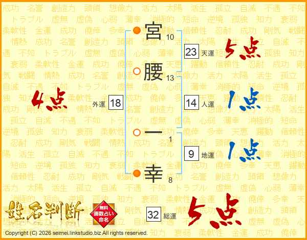 宮腰一幸さんの総運は32画の5点!