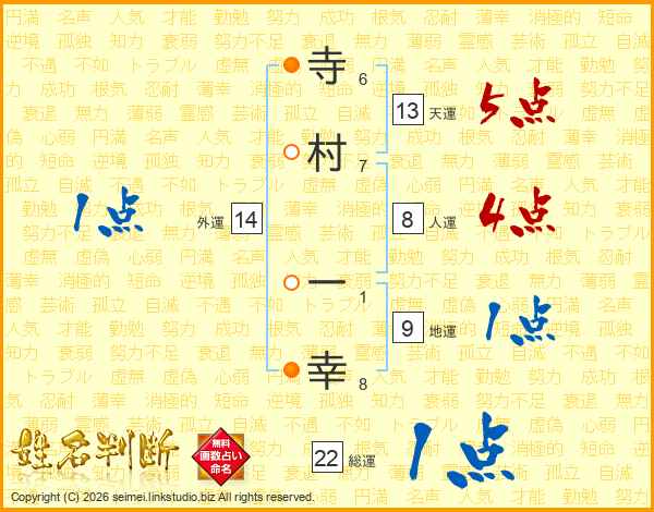寺村一幸さんの人運は8画の4点!