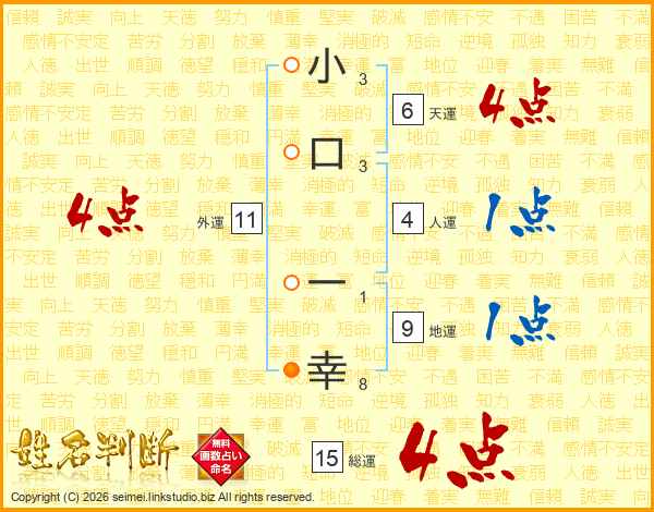 小(3画)口(3画) 一(1画)幸(8画)