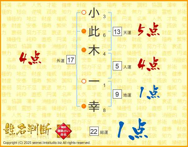 小(3画)此(6画)木(4画) 一(1画)幸(8画)