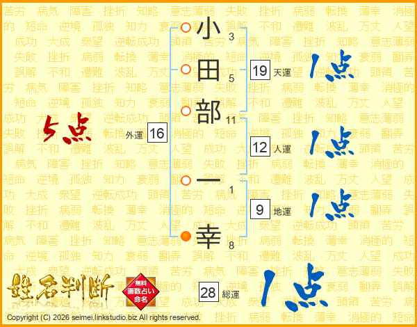 小田部一幸さんの天運は19画の1点!