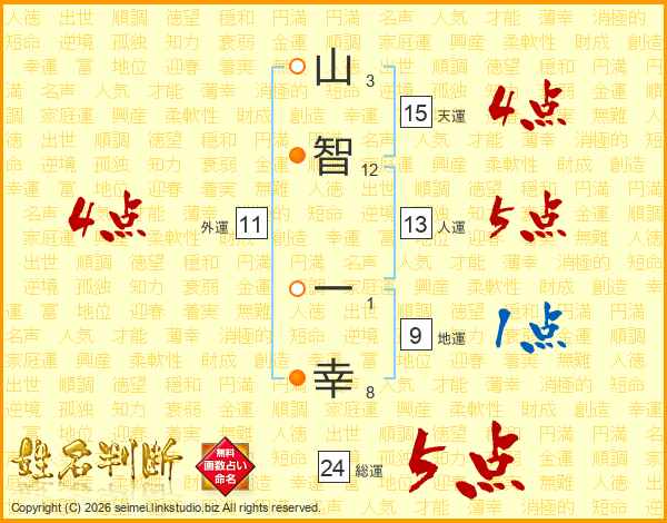 山智一幸さんの総運は24画の5点!