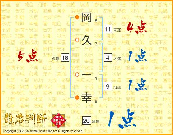 岡久一幸さんの天運は11画の4点!