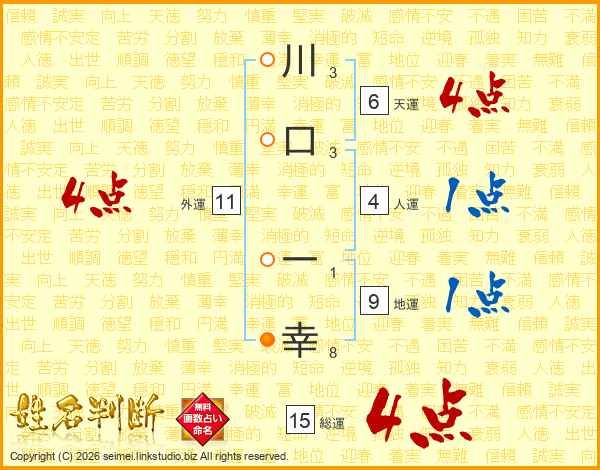 川口一幸さんの総運は15画の4点!
