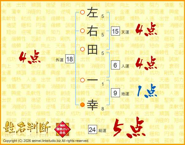 左右田一幸さんの総運は24画の5点!