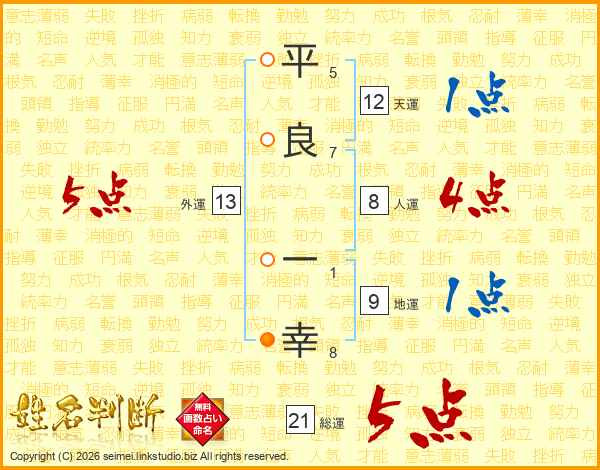 平良一幸さんの総運は21画の5点!