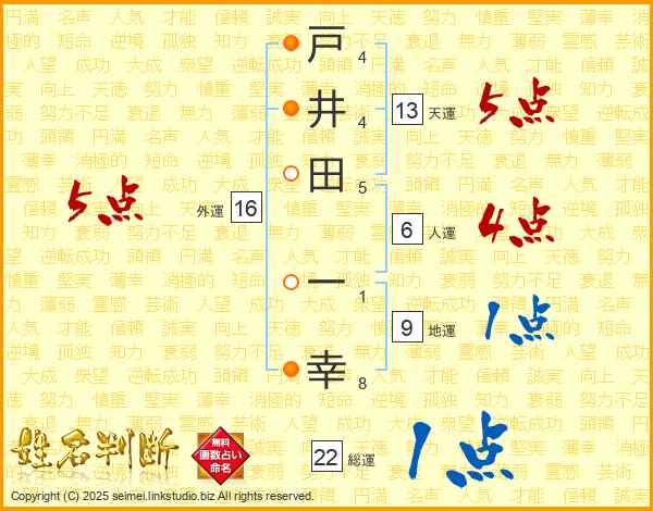 戸(4画)井(4画)田(5画) 一(1画)幸(8画)