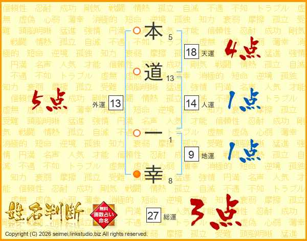 本道一幸さんの天運は18画の4点!