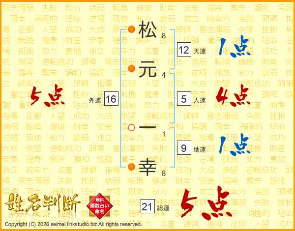 松元一幸さんの総運は21画の5点!