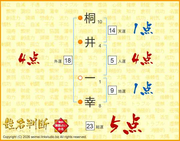 桐井一幸さんの総運は23画の5点!