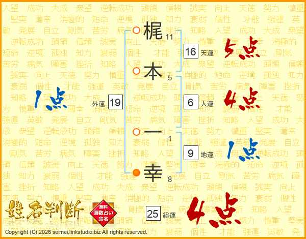梶本一幸さんの天運は16画の5点!