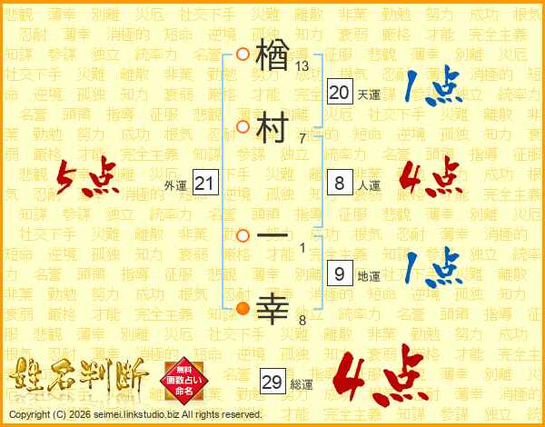 楢村一幸さんの総運は29画の4点!