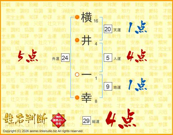 横井一幸さんの総運は29画の4点!