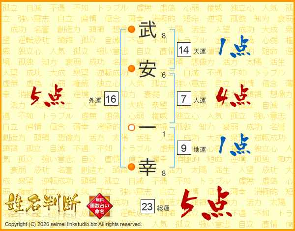 武安一幸さんの総運は23画の5点!
