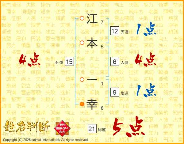 江本一幸さんの総運は21画の5点!
