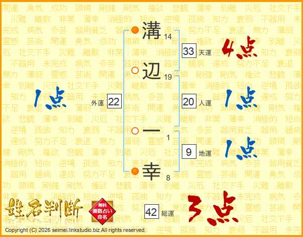溝辺一幸さんの天運は33画の4点!