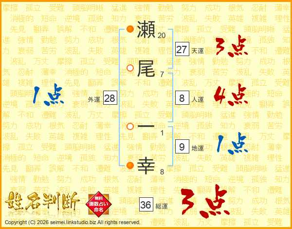 瀬尾一幸さんの天運は27画の3点!