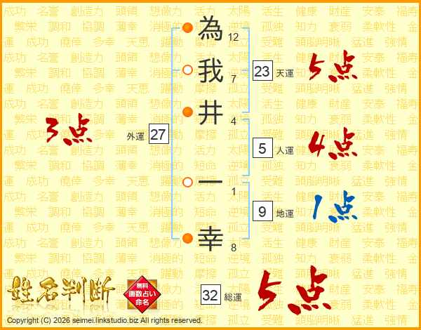 為(12画)我(7画)井(4画) 一(1画)幸(8画)