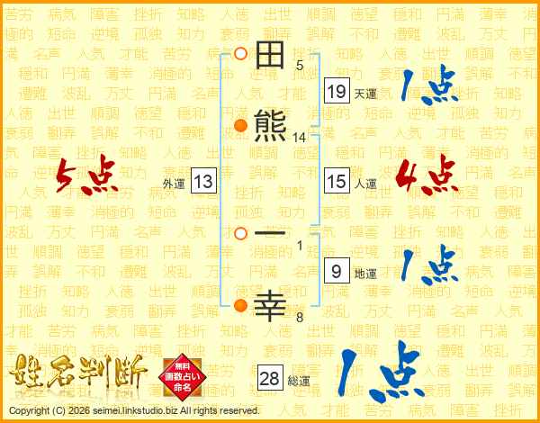 田熊一幸さんの天運は19画の1点!