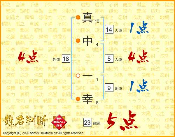 真中一幸さんの総運は23画の5点!