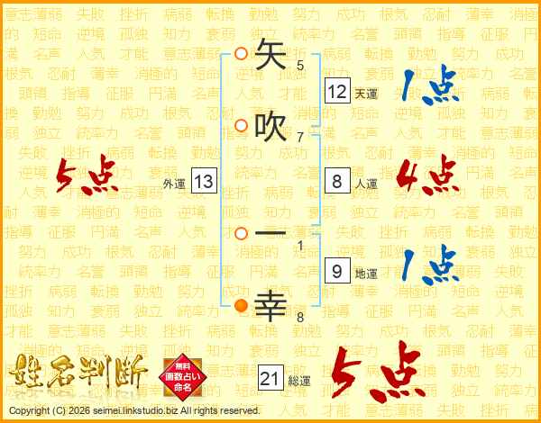 矢吹一幸さんの総運は21画の5点!