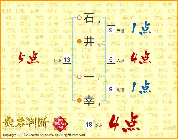 石(5画)井(4画) 一(1画)幸(8画)