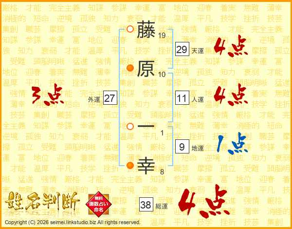 藤原一幸さんの総運は38画の4点!