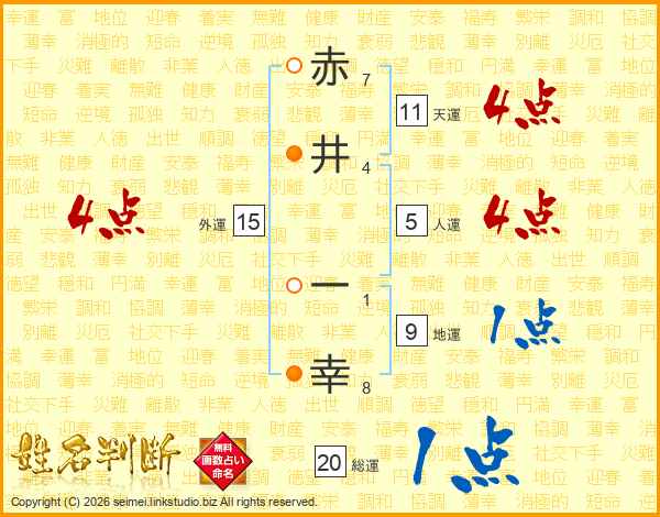 赤井一幸さんの天運は11画の4点!