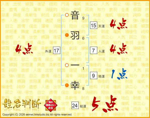 音羽一幸さんの総運は24画の5点!