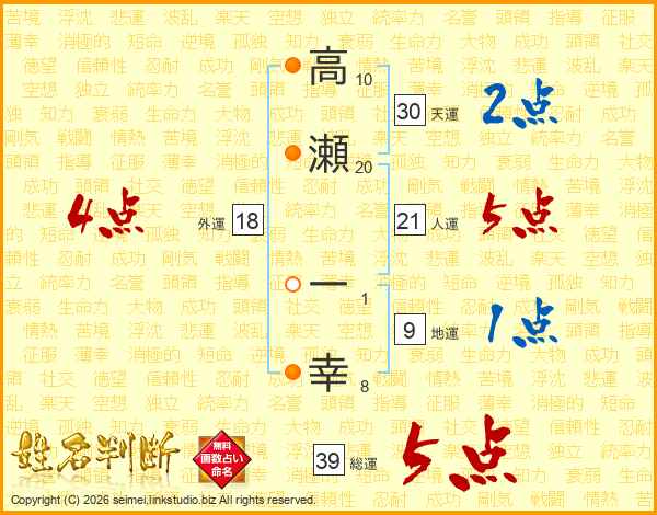 高瀬一幸さんの総運は39画の5点!