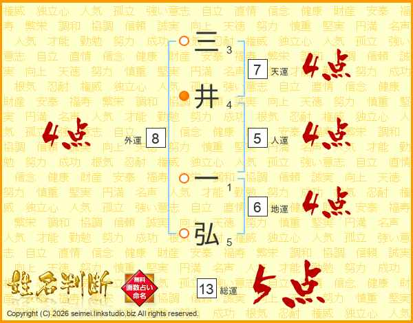 三井一弘さんの総運は13画の5点!