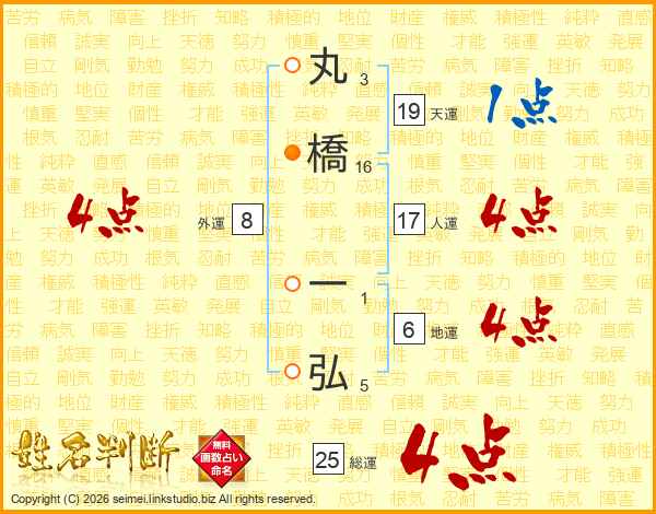 丸橋一弘さんの人運は17画の4点!