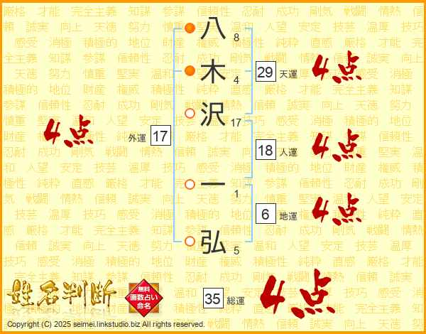 八木沢一弘さんの総運は35画の4点!