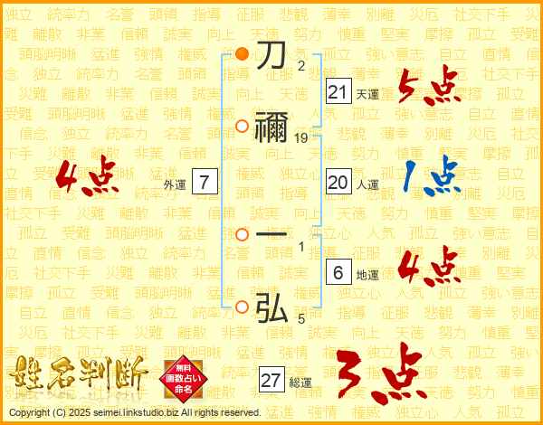 刀(2画)禰(19画) 一(1画)弘(5画)
