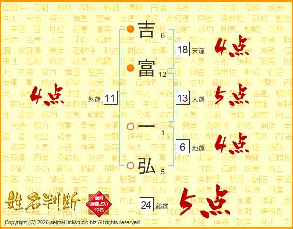 吉(6画)富(12画) 一(1画)弘(5画)