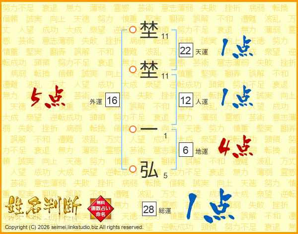 埜埜一弘さんの総運は28画の1点!