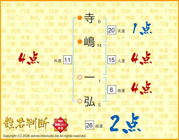 寺(6画)嶋(14画) 一(1画)弘(5画)