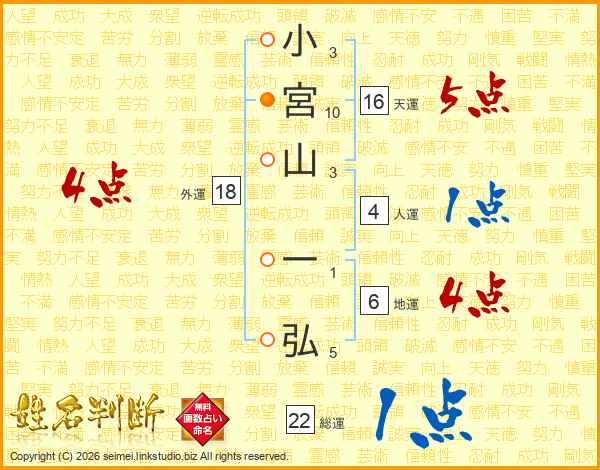 小(3画)宮(10画)山(3画) 一(1画)弘(5画)