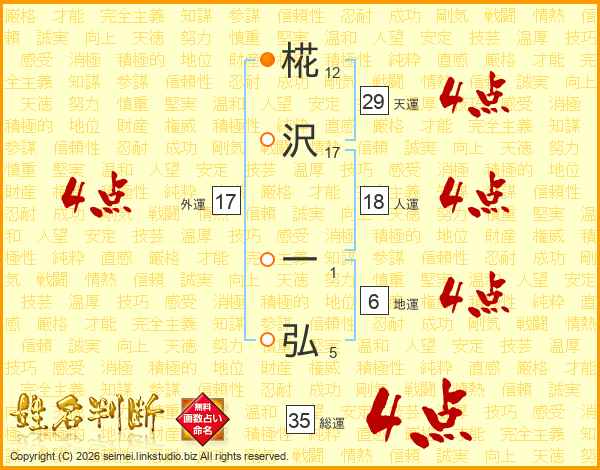 椛沢一弘さんの天運は29画の4点!