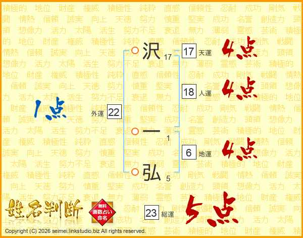 沢一弘さんの総運は23画の5点!