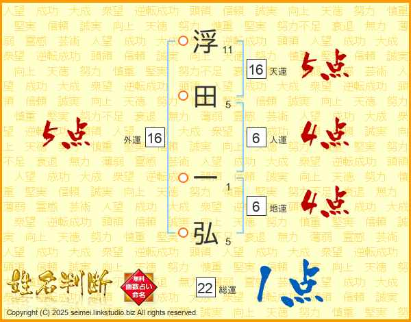 浮田一弘さんの天運は16画の5点!