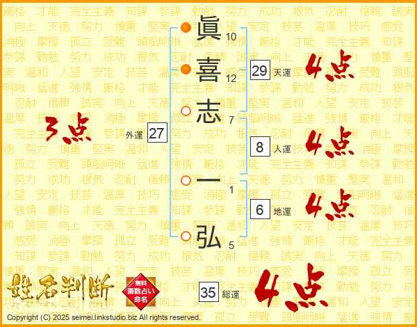 眞喜志一弘さんの天運は29画の4点!
