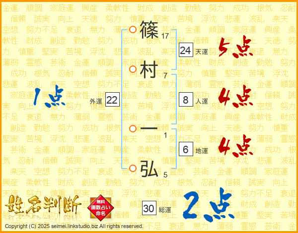 篠村一弘さんの天運は24画の5点!