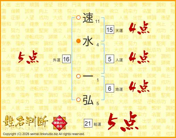 速水一弘さんの総運は21画の5点!