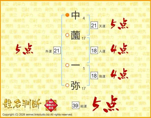 中薗一弥さんの天運は21画の5点!