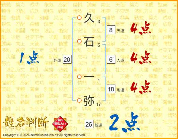 久石一弥さんの総運は26画の2点!