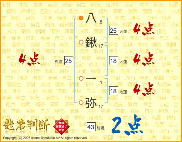 八鍬一弥さんの天運は25画の4点!