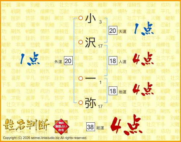 小沢一弥さんの総運は38画の4点!