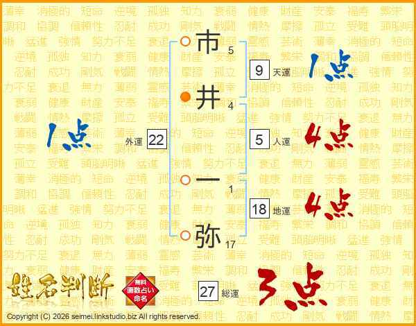 市(5画)井(4画) 一(1画)弥(17画)