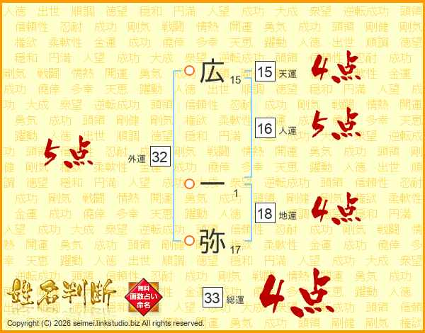 広一弥さんの総運は33画の4点!